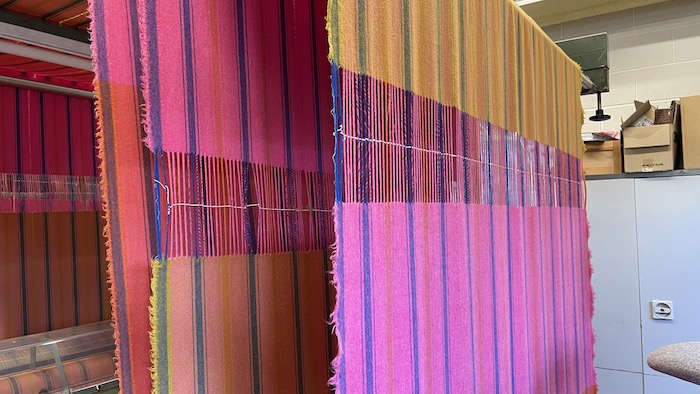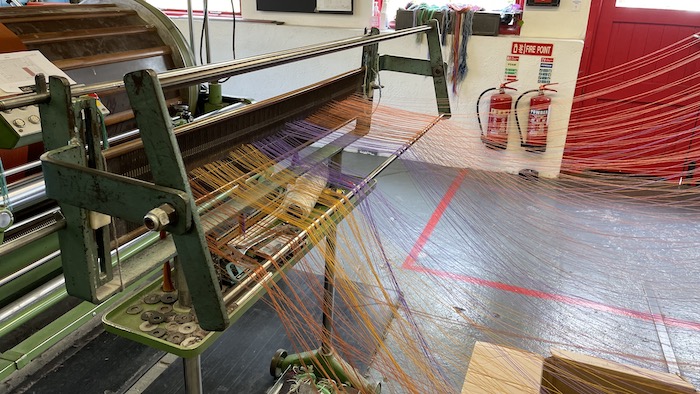 The white line is the "cut" thread. These are blankets that will have tassels.
