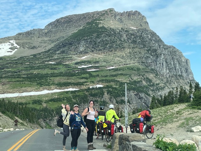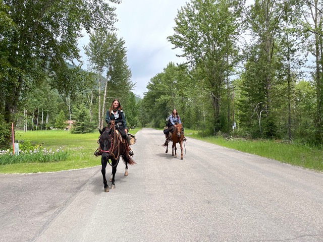 *June 19* Lyndsey and Bri riding on River Bend Dr., West Glacier MT. On their way to Mexico.
