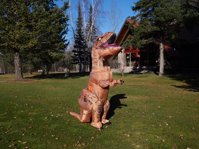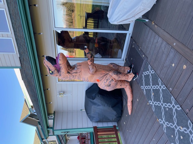 *October 31* The unknown "T.rex or treater" passed thru on Halloween, with his handy shot glass looking for libations