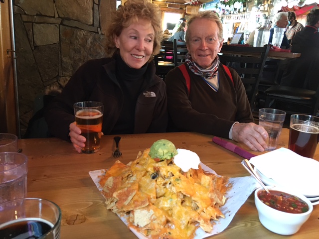*March 11* I met up with Wanda and Bob who came in to town to ski at Whitefish Mountain. We had a pint or two (I brought my hat!) at HellRoaring Saloon, where we shared a half order of their famous nachos. Great to be able to meet up with them.