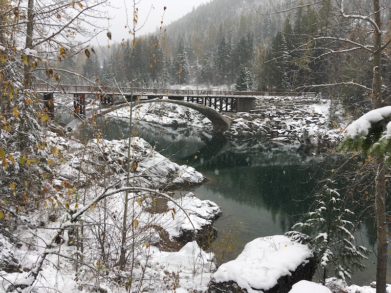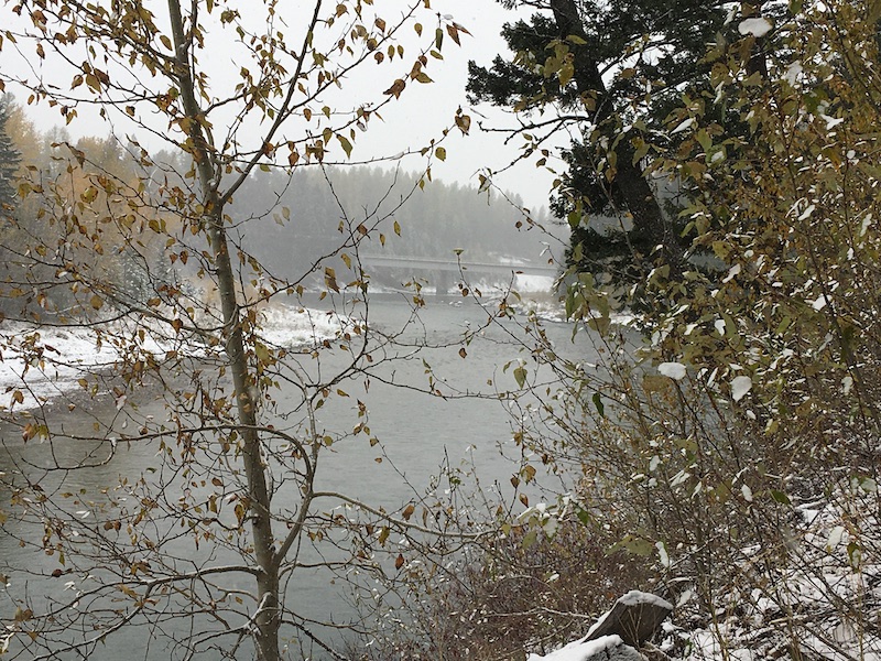 Upstream from the bridge. In the summer this is the whitewater rafting takeout spot for Glacier Raft Co.