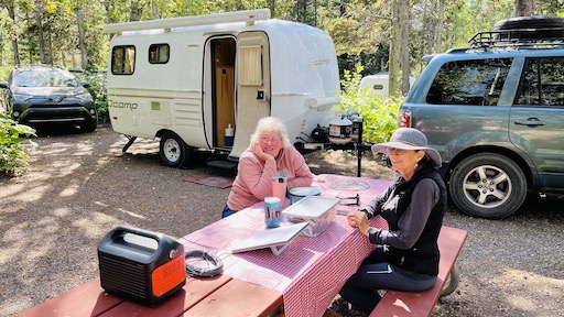 Sandy's cousin Nancy visited us in August. We snagged reservations for 2 nights camping at Many Glacier, loaded up the Scamp and headed over. Nancy had her dog Zeke and camped in her tent next to us.