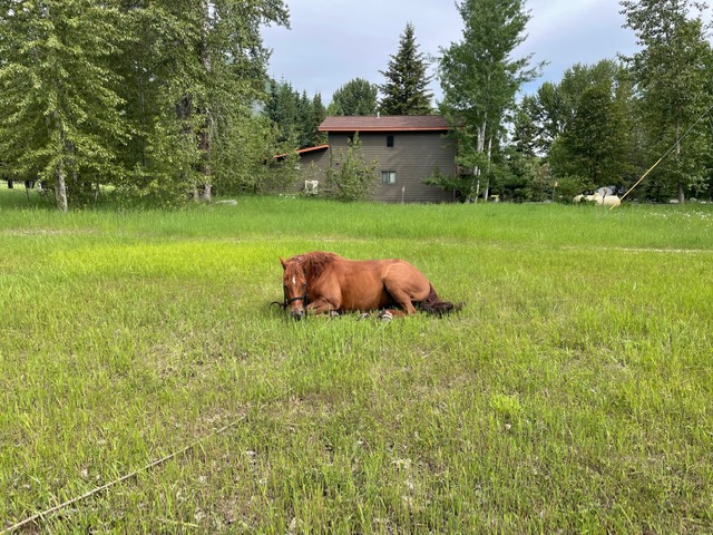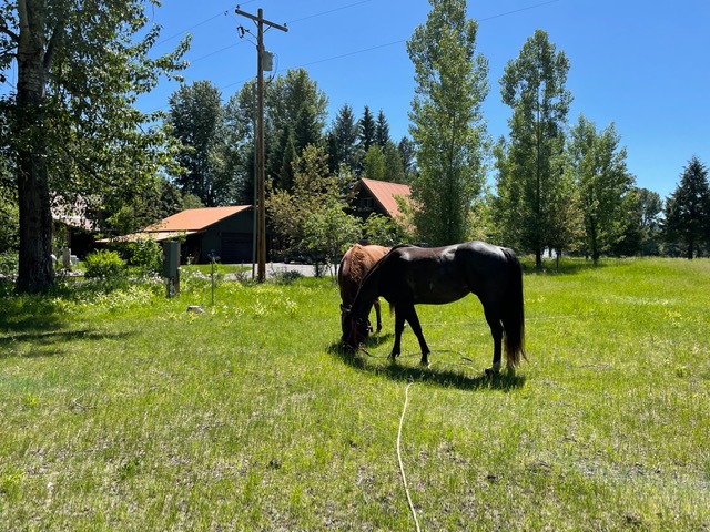I called our next door neighbors and asked whether they would allow them to graze the horses on their property and possibly spent a night, which they very generously agreed. The ladies had been riding for over a week, and were absolutely delighted by our offer of showers and laundry facilities, along with a dinner of Sandy’s homemade pizza and some generous sampling of Glacier Distilling products.