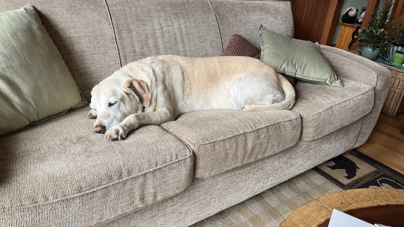 More visitors in August. Some just like a more relaxed vacation Funny story -- Warren said Bruce would never go on the couch, and yet the minute Warren left the house look what happened!