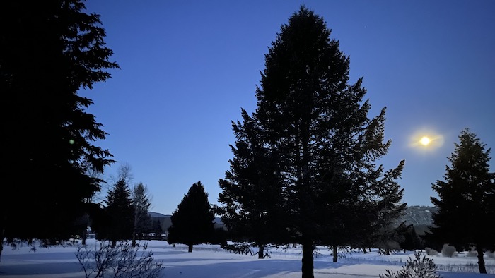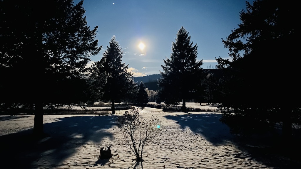 This photo was taken this morning (10/28/23). The sun does not set in the morning, at least in these parts. Today is the setting of the full moon. We had an early season snowstorm on Tuesday, and on a clear night with a full moon the reflection on the snow can look like daylight. That's what greeted me this morning. That and the unseasonable 5 degree weather.