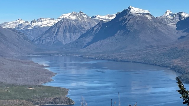 WOW! An iPhone camera does not fully capture the experience. The cold air is just so clear. The snow on the mountains with the sun on them is glowing. The view is looking up Lake McDonald, the largest lake in the park.