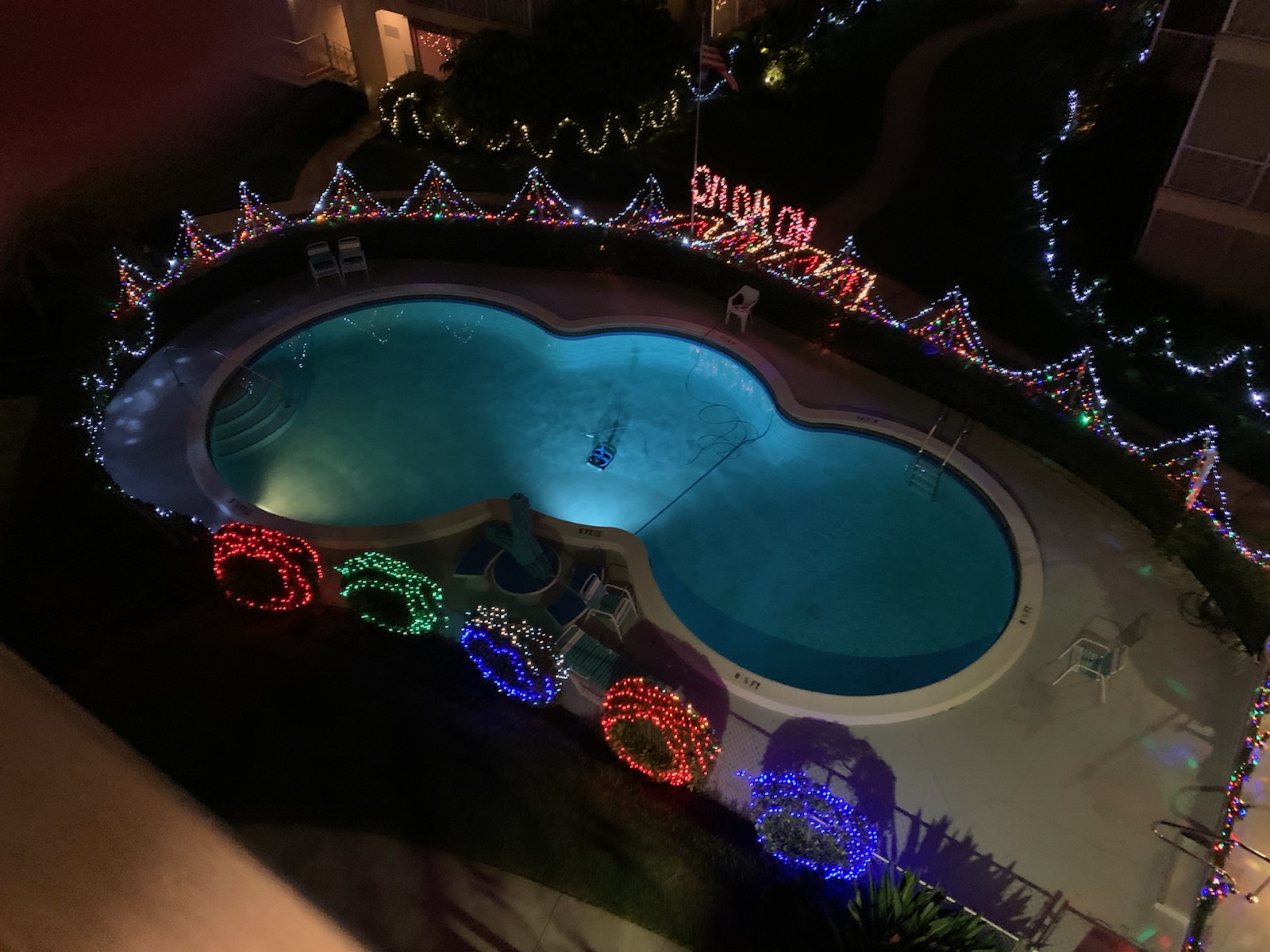 Seen from North Shore, the sign says "HO HO HO", but viewed from B6 we get the ambigram "OH OH OH".
