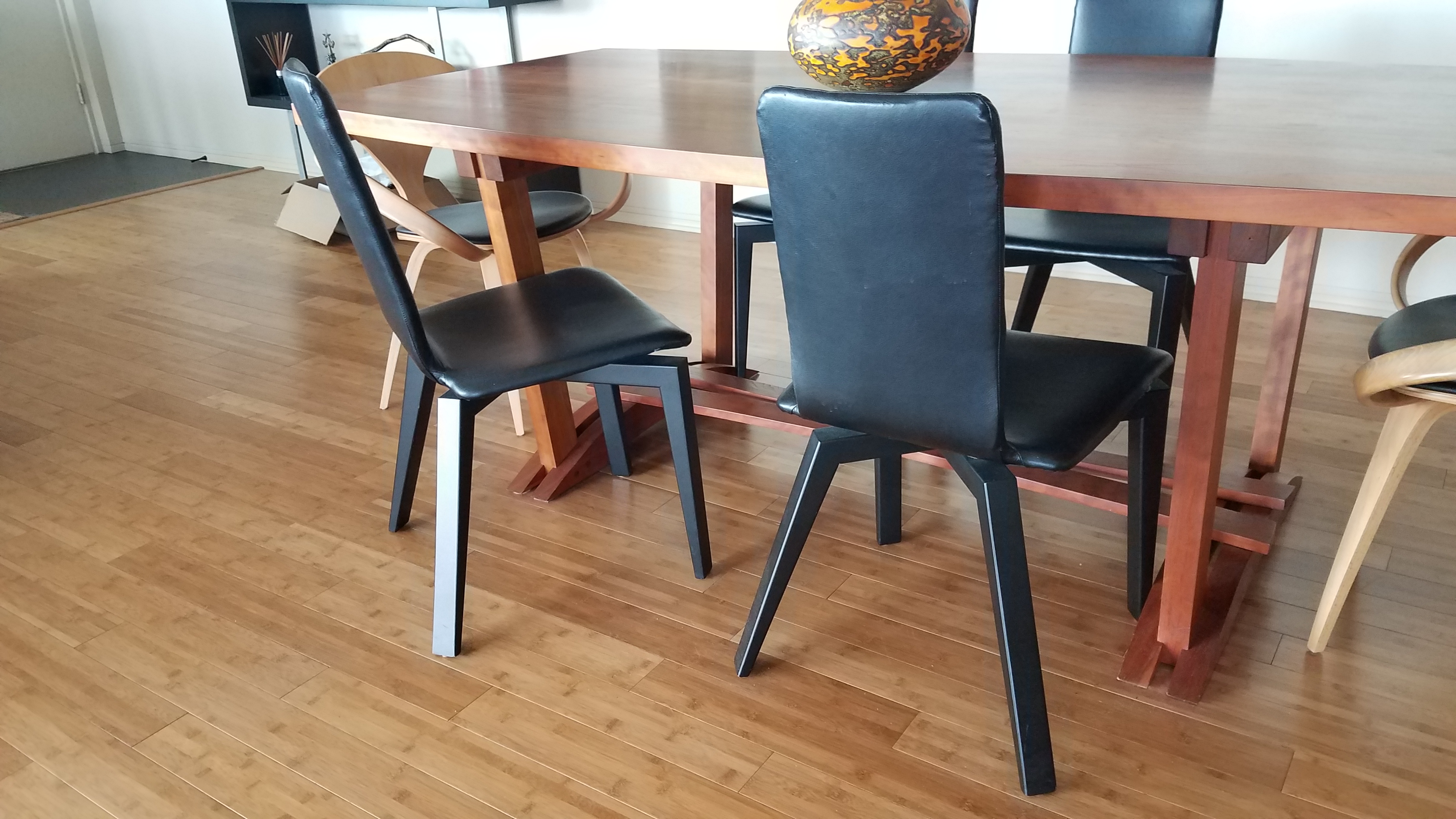 We have four black chairs as pictured looking for a home. Anyone interested? Carol Kline
